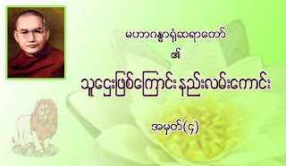 စာဂသမၸဒါ။ ။ အမ်ဳိးသားသည္ သူတစ္ပါးကုိ ေပးကမ္းဖို႔ ႏွေျမာဝန္တိုစိတ္ မရွိ။ ေပးကမ္း စြန္႔ႀကဲ စရာကိစၥ ႀကဳံလာလွ်င္ တြန္႔တိုျခင္းမရွိဘဲ လြတ္လြတ္ကၽြတ္ကၽြတ္ စြန္႔ႀကဲေလ့ ရွိ၏။ အလွဴခံလာလွ်င္ စင္ၾကယ္ေသာလက္ျဖင့္ အဆင္သင့္ ကပ္လွဴဖို႔ရန္ မိမိလက္ကုိ အၿမဲ စင္စင္ၾကယ္ၾကယ္ ထား၏။ စြန္႔ႀကဲ ေပးကမ္းေလ့ရွိေၾကာင္းကို သိၾကေသာေၾကာင့္ ထုိအမ်ဳိးသားအထံ၌ ေတာင္းရမ္းသူတုိ႔က ေတာင္းရဲၾက၏။ ထုိသုိ႔ စြန္႔ႀကဲေပးကမ္း လွဴဒါန္းေနရလွ်င္ ေပ်ာ္ရႊင္ႏုိင္မႈကုိ “ စာဂသမၸဒါ ’’ ဟု ေခၚရသည္။